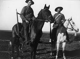 you could make some brilliant conversions from these right period mounties. the tunics are right for boer war cavalry and the hats need little attention. if you cut the hats off you could give them slouch hats.the only prob with that is that divina hill has closed down her plastic bizz that supplied the unpainted stuff for low cost. these mounties are by upnawy that great of our hobby. the australian horseman below is avaible in the mode shown on ebay and you could use the head on the mounties shown here and on the riders below.
